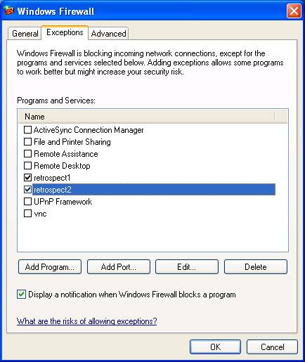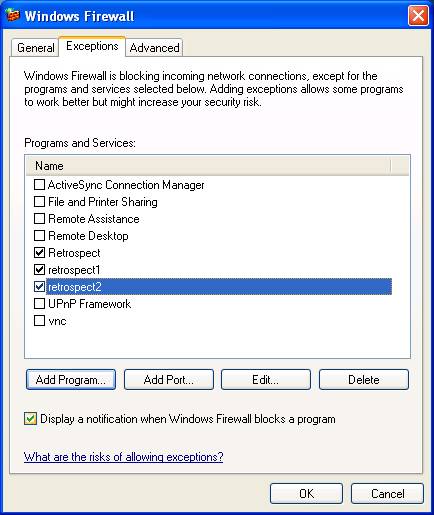 This will take you to where you allow Retrospect to come in and talk to your computer and allow Retrospect to copy data from the client machine, and to do this needs two additional ports to be added.
