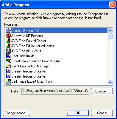 Windows XP will go off and search for all the programs on the PC and come back with a list: